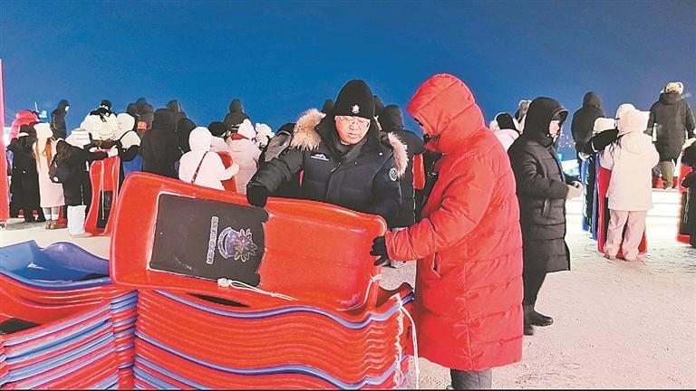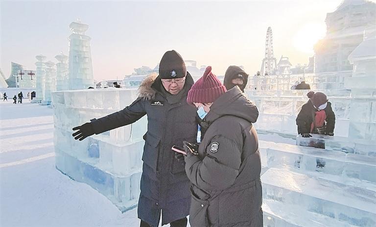 “这几年,哈尔滨冰雪大世界火热出圈,服务也越来越精细化,早已从基础保障跨入了冰天雪地里细致入微的守护。比如,所有的冰台阶都铺上了防滑垫;各个点位都有安保人员随时服务;热门项目,不仅在园区很多显眼位置都有预约服务牌,上下口还都配备了安全值守人员。”他说,气温走低或特殊节日时,园区工作人员还会为游客送上暖心姜茶,今年,卫生间数量进一步增加,新建的5000平方米“冰雪暖堡”成为游客休憩的温暖港湾,室外还有既能快速暖手还能即时充电的暖手亭……孙希铜细数着冰雪大世界一个个暖心服务细节。而这些细节,在很多游客看来,比冰雪奇观更打动人心。