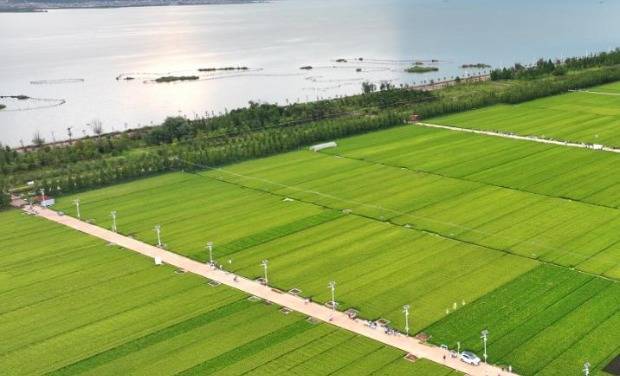 湖畔稻田景观。 通讯员曾永洪摄