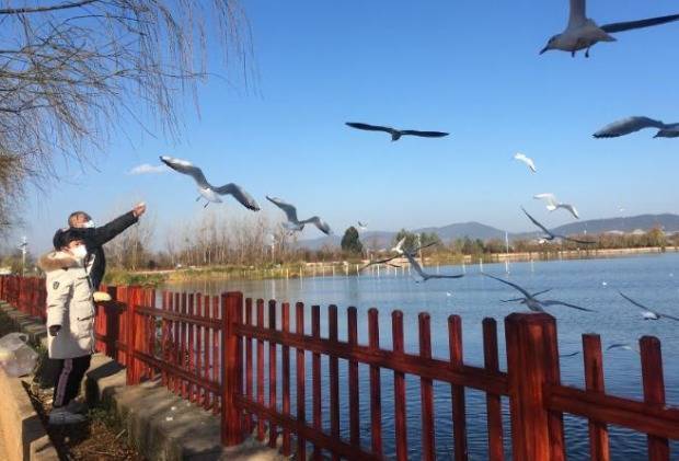 杞麓南岸人鸥同乐。 通讯员朱雁飞摄