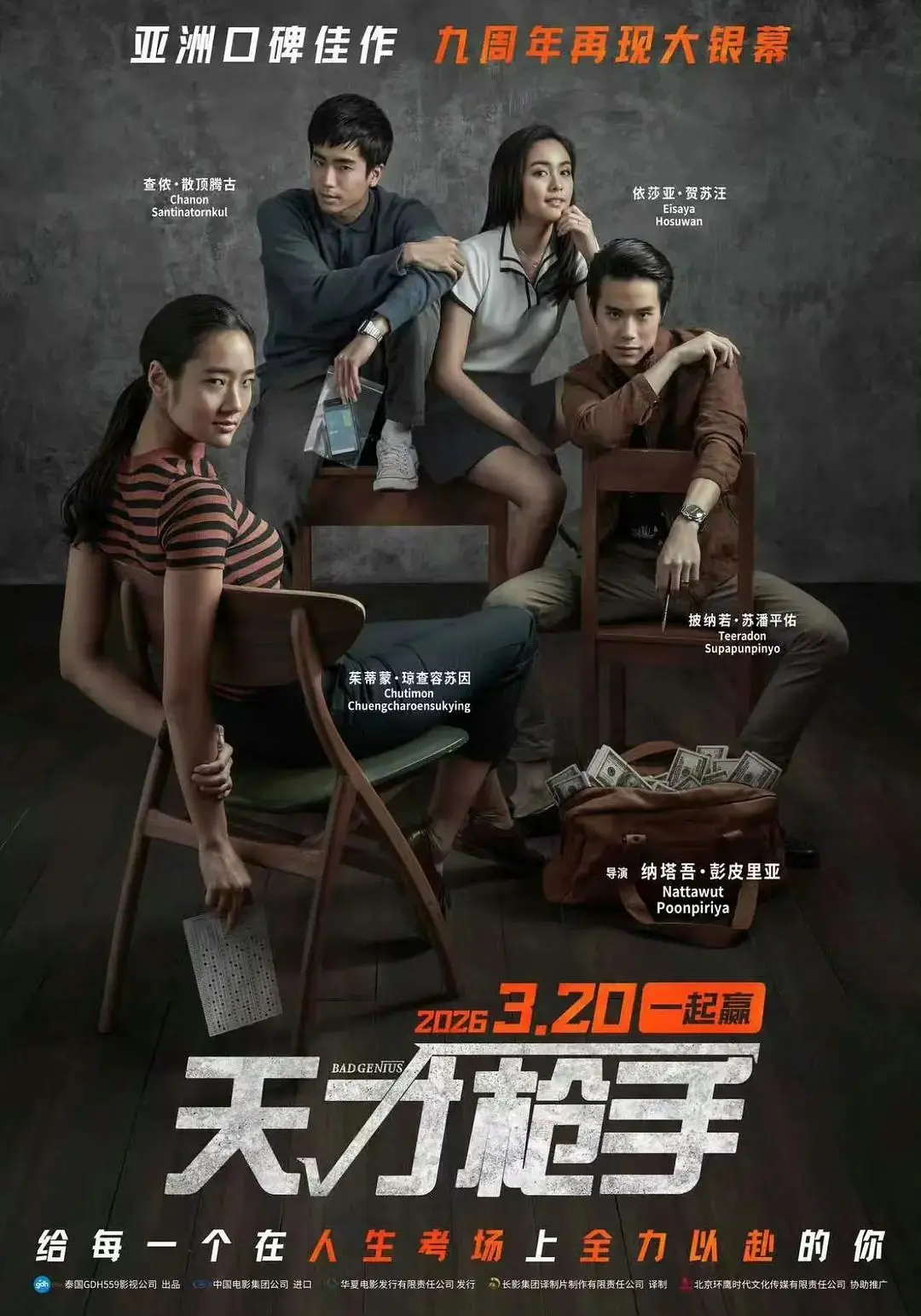 时隔9年,泰国现象级影片《天才枪手》将于3月在中国影院重映。该片改编自2014年轰动亚洲的真实考场作弊案,巧妙将校园青春题材与犯罪悬疑融合,通过紧凑的叙事和凌厉的剪辑,将考场化为谍战般的“战场”,营造出极强的沉浸感与紧张感。2017年,该片在中国影市上映后受到好评,是迄今在中国影市票房最高的泰国电影。